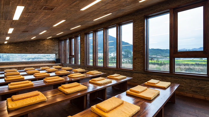 厂房走廊装修设计:在这里雨水充足,在下雨时节可以坐在走廊上,看看蒙蒙细雨、看看大自然的变化,也是一种心灵的享受,设计师在不破坏自然的前提下,打造优质的生活环境。