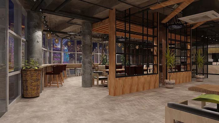 本次咖啡馆装修设计方案讲解到此结束,设计风格采用工业风格,设计师希望给客户营造一个轻松、愉悦的空间氛围,整个咖啡馆空间自成一体,客户在这里可以休息、可以学习、可以谈天说地。