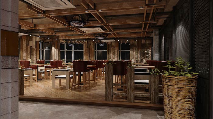 咖啡馆墙体装修设计:在墙体的设计中,设计师没有采用乳胶漆,而是保留与强化了原本的墙体,之所以这样安排,是希望给咖啡厅一个粗狂的环境,让客户在这样的环境中放飞自己。