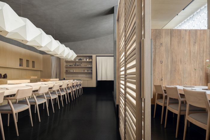 设计师将味觉上的奇妙感受用空间的方式叙述,利用原生材料和光线的结合,打造出淳朴的物性和真挚的情感。空间氛围以质而实绮、癯而实腴的风格为主,灵感来源于日本的传统艺术和自然景观。