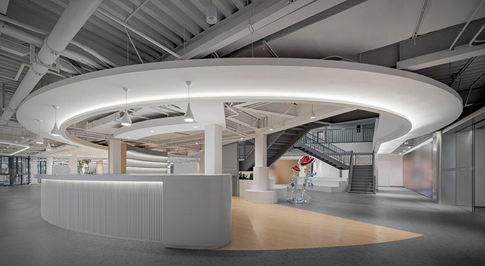 在品牌交流社区方面,设计师希望把品牌基因植入环境当中,营造企业发展和个人成长能相互扶持的空间生态。交流社区成为了整栋大楼最受欢迎的区域,合作碰撞、文化活动、自由办公、放松休闲等场景使这里热闹非凡。