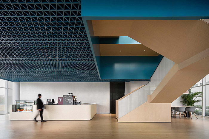 这是宁波的一个办公总部项目的设计案例。设计师围绕“未来、科技、环保、可持续”的关键词,打造了一个简洁透明、动静结合的复合型空间。