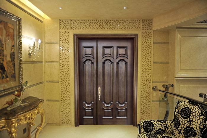 1:指木门取材于珍贵树种且加工工艺精雕细琢的特性。由于制作原木门的木材一般都是具有优良特性的珍贵树种,这就使原木门单从材质上就具有很好的质感和观感;