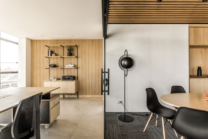 本次木材公司办公室装修设计效果图讲解到此结束,设计师在办公室设计中,以分割、简洁、流动为办公室设计关键词,目的就是希望打造一个便捷且实用的办公空间。