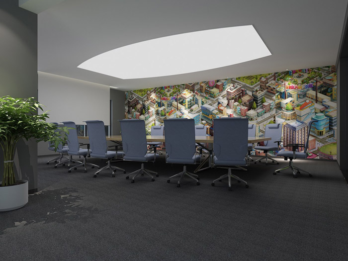 本次为科技公司装修设计效果图,办公室设计面积360平方,设计师在办公室设计中,以色彩搭建科技风,以现代简洁搭建内部系统,两者相结合打造一个人性化的办公空间。